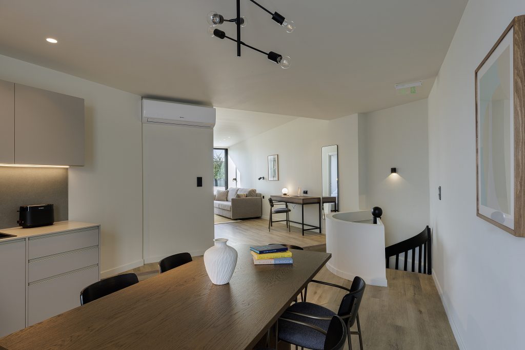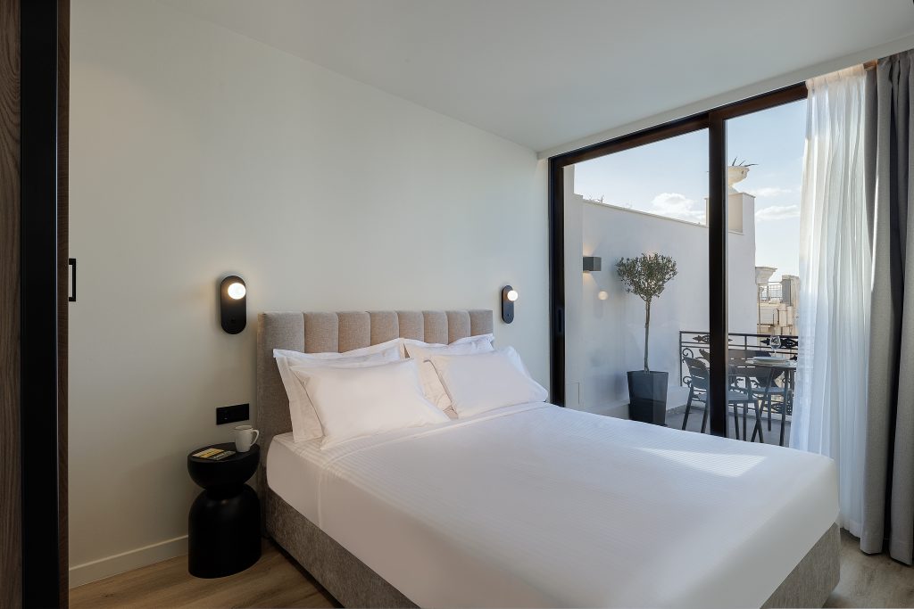 Los apartamentos en master Plaka Atenas están diseñados para ofrecer una combinación armoniosa de estilo y funcionalidad, creando un refugio sereno dentro del vibrante entorno de la ciudad. Cada uno de los 14 apartamentos refleja una estética moderna y minimalista, con líneas limpias, tonos neutros y mobiliario cuidadosamente seleccionado para transmitir calma.