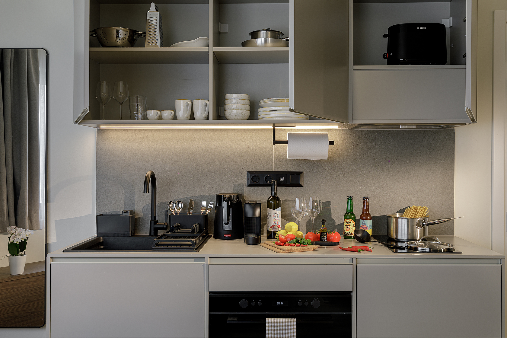 ¡Oui Chef! Todos nuestros apartamentos cuentan con cocinas reales en las que realmente se puede cocinar.