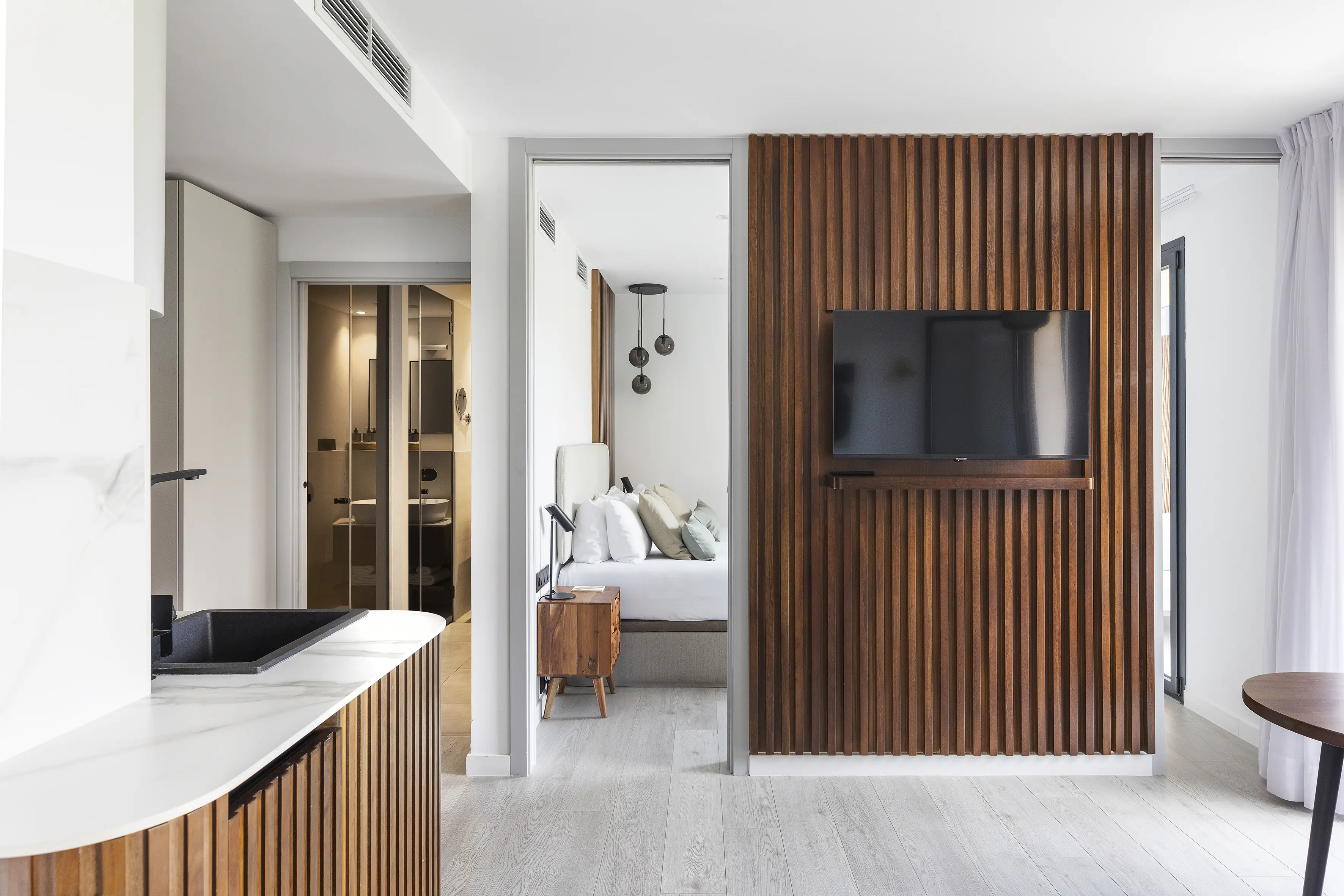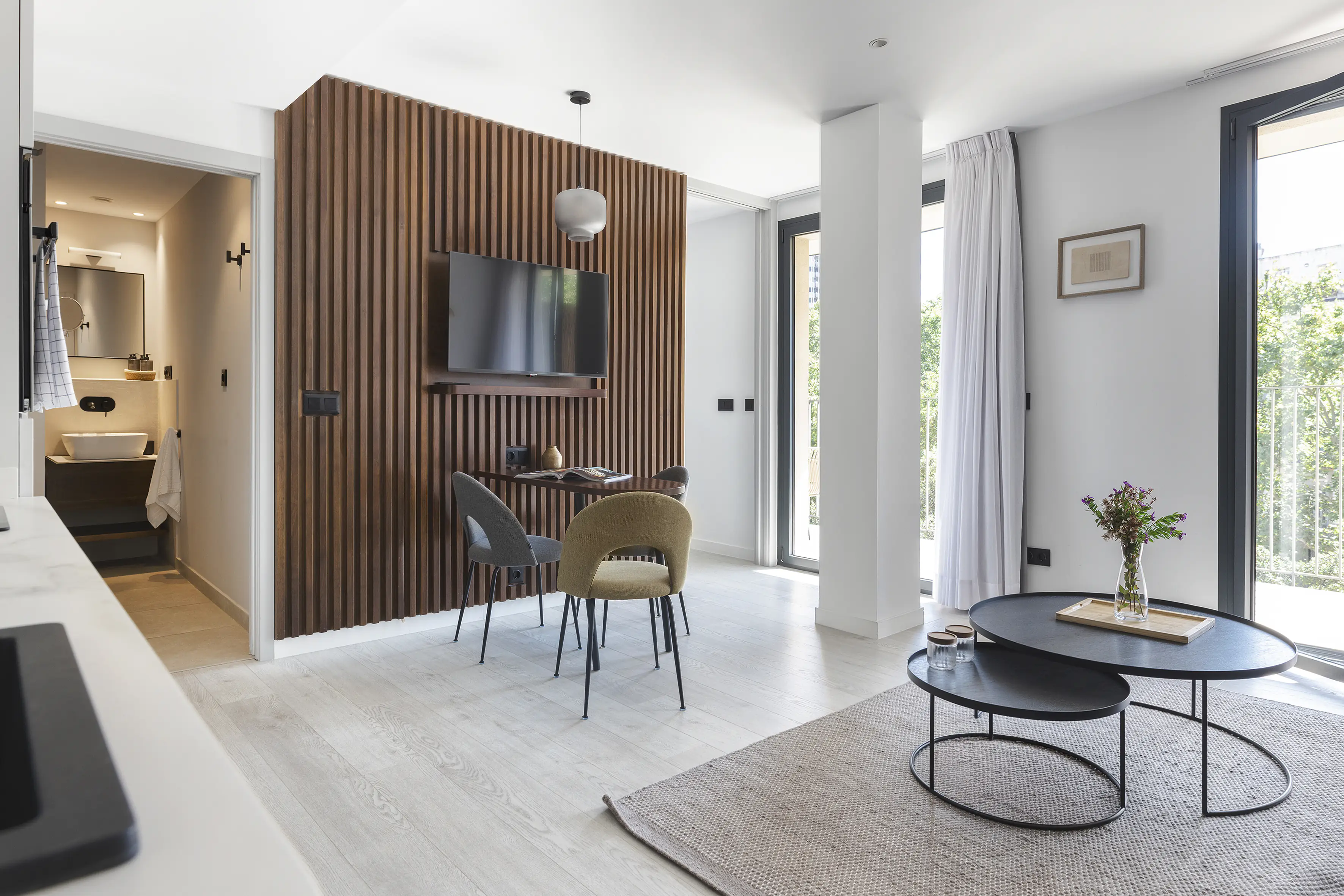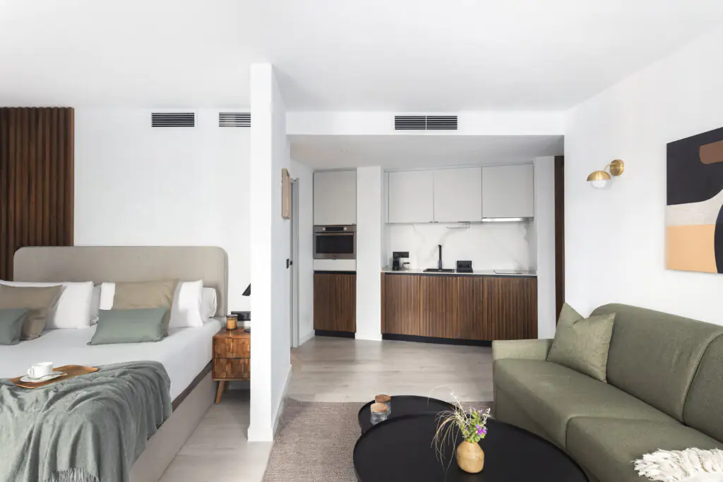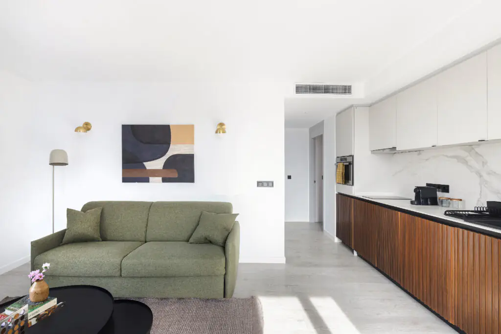 Todos los 33 apartamentos exclusivos del master La Rambla están diseñados para sentirlos como tu propio rincón de la ciudad: luminoso, funcional y cuidadosamente distribuido. Sul estilo combina el encanto moderno mediterráneo con líneas limpias escandinavas, creando un espacio tan cálido y acogedor, como elegante y sencillo.