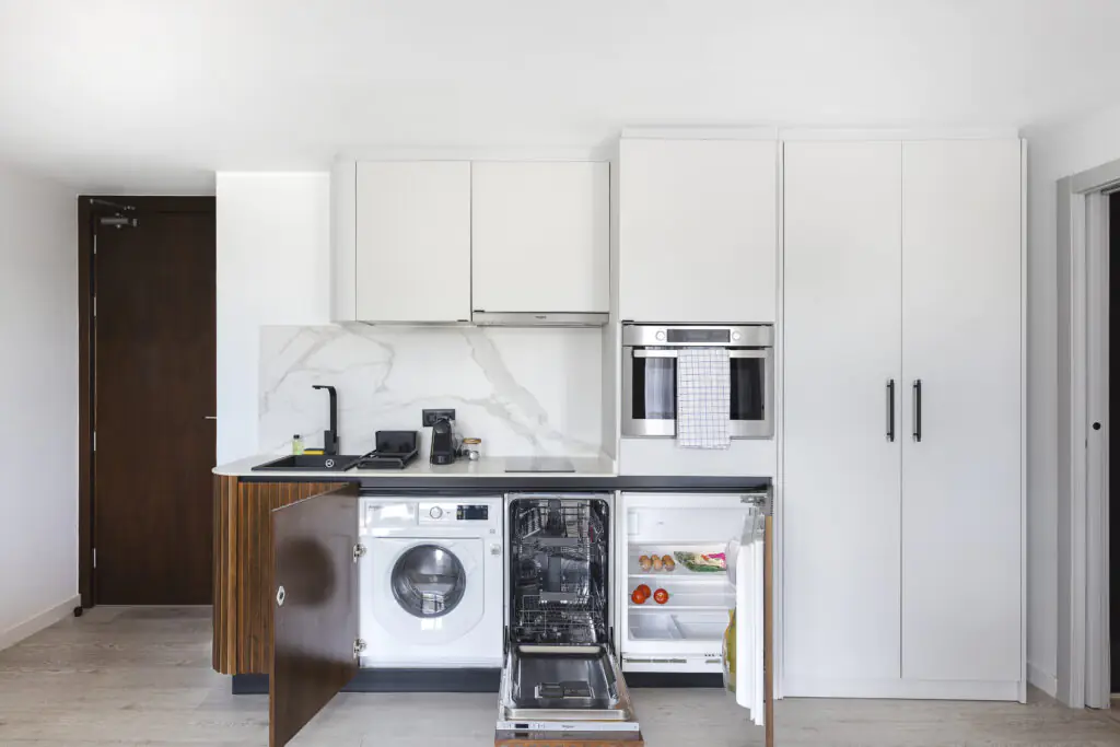 Con Wi-Fi rápido, aire acondicionado, cocinas completamente equipadas, ascensor y servicios de limpieza profesional, tendrás todo lo que necesitas para sentirte como en casa, justo en el corazón de todo.