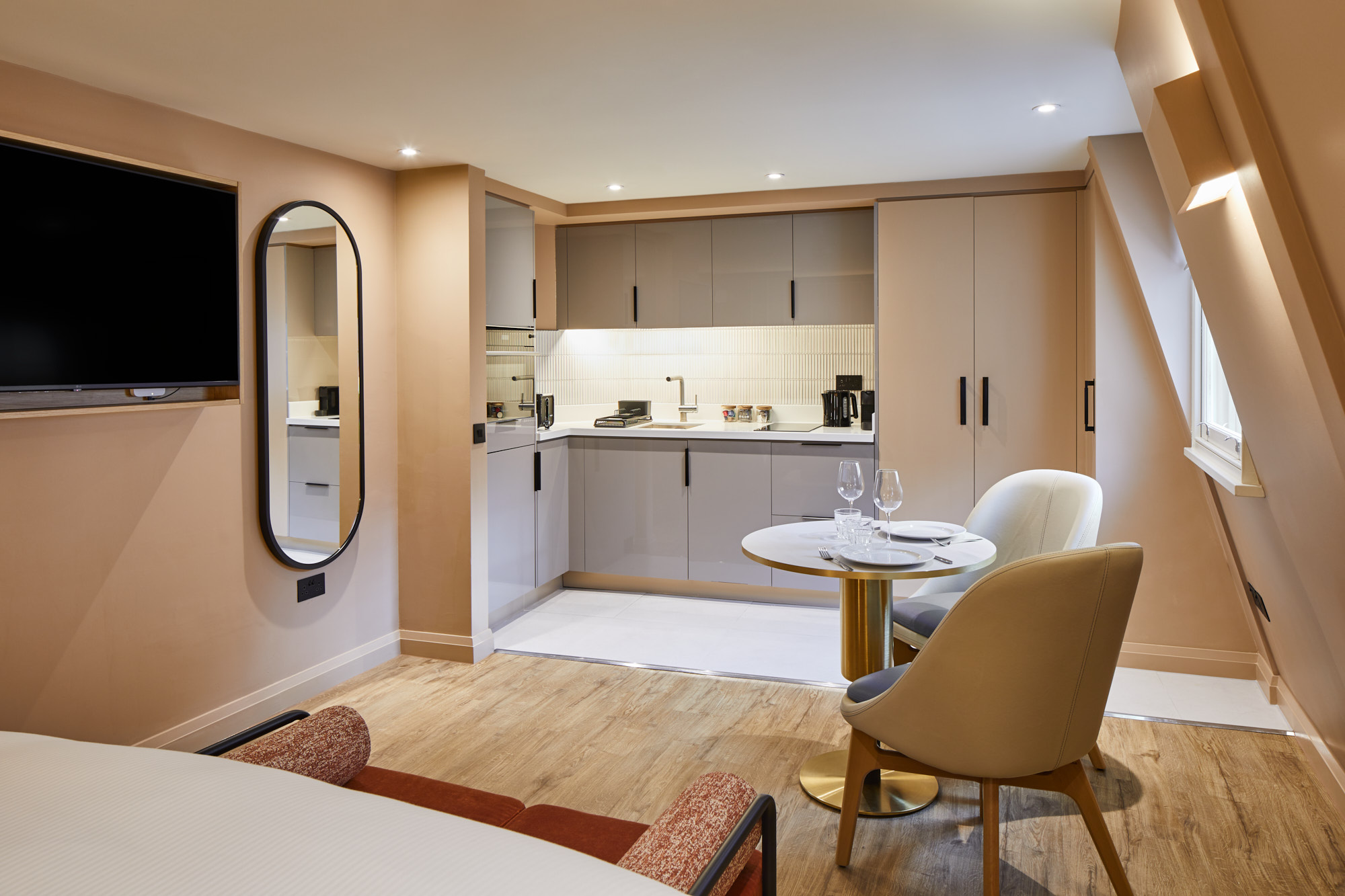 Diseñado para alojar hasta cuatro personas, el Apartamento Familiar de master Cannon Serviced Apartments ofrece 52 m² de espacio cómodo y práctico. Ideal para familias o pequeños grupos, este apartamento presenta un diseño inspirado en el estilo escandinavo, con tonos neutros cálidos, suelos de madera y acabados naturales. La distribución despejada y el mobiliario funcional crean un ambiente armonioso para relajarse tras un día explorando Londres.