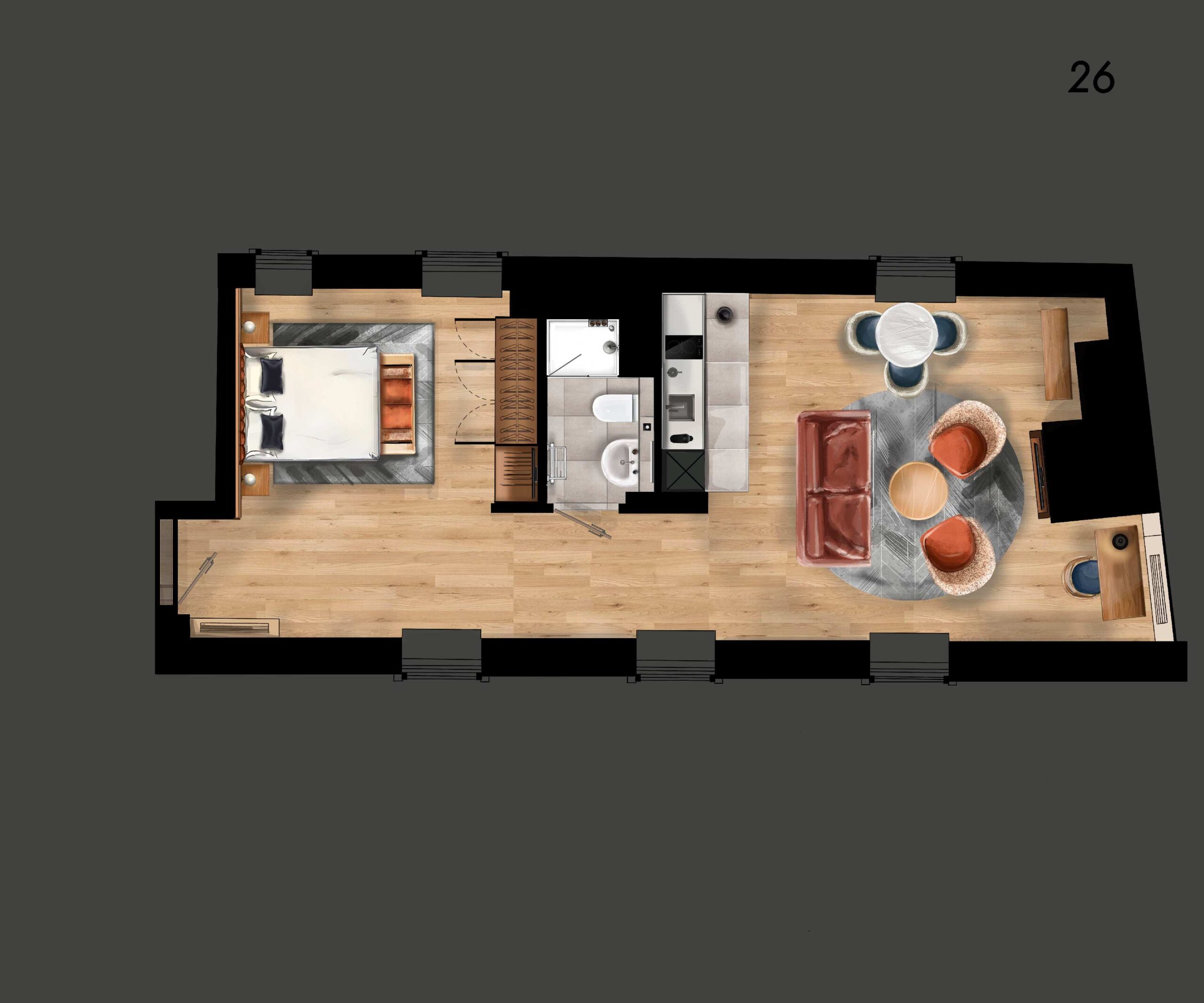 Con 62 m² de espacio bellamente diseñado, el apartamento Apartamento de un dormitorio tipo loft es perfecto para familias o grupos de hasta cuatro personas. Este amplio apartamento combina a la perfección funcionalidad con la estética calmada del diseño escandinavo. Tonos tierra cálidos, suelos de madera y acabados naturales crean un ambiente acogedor y sereno.