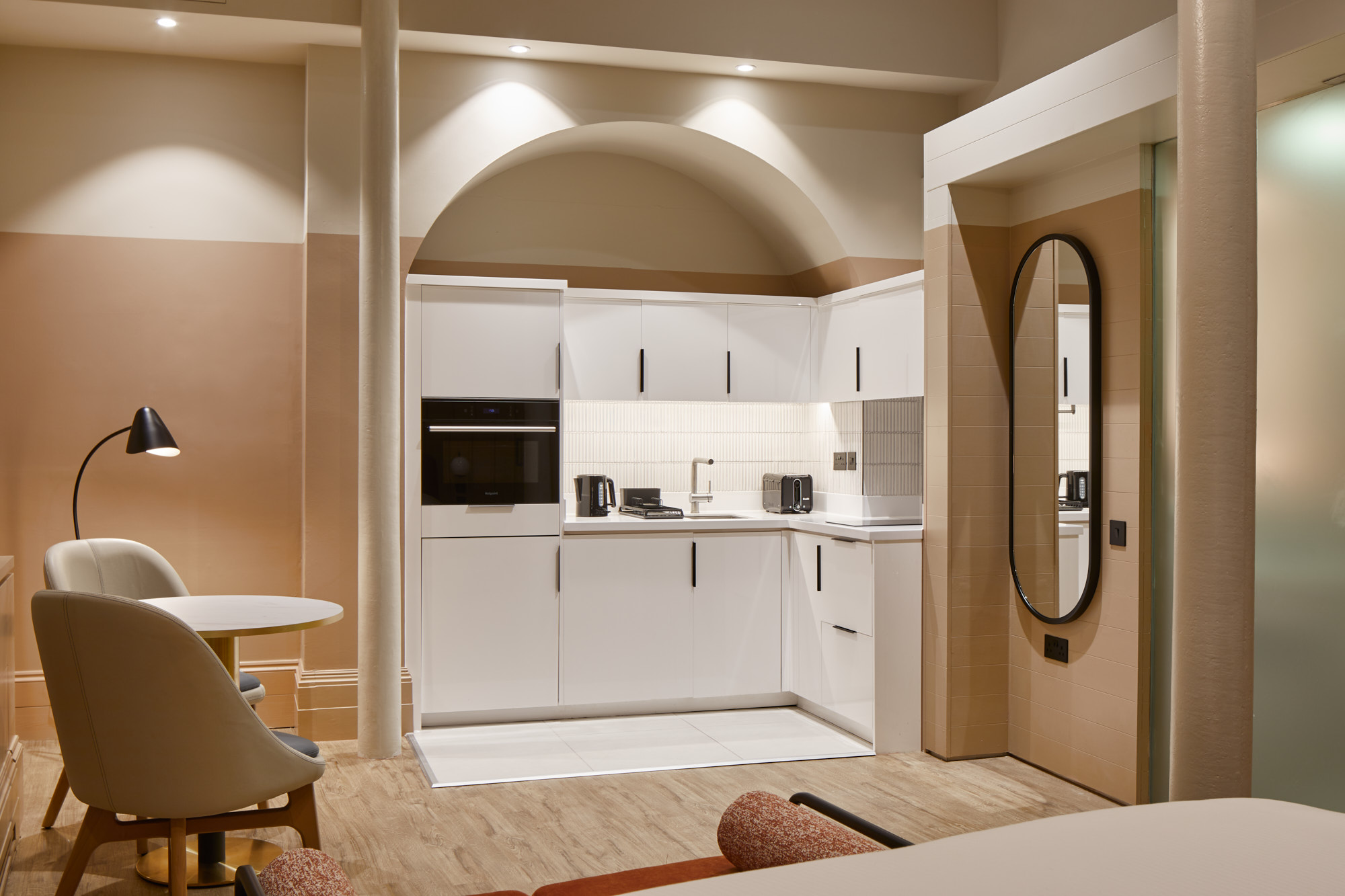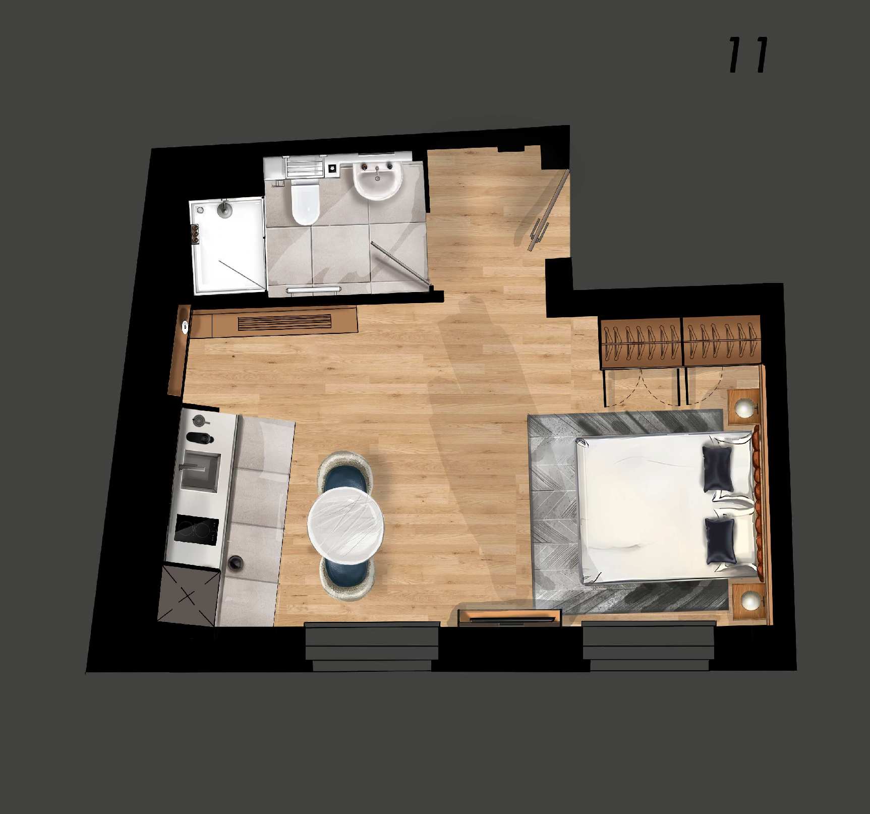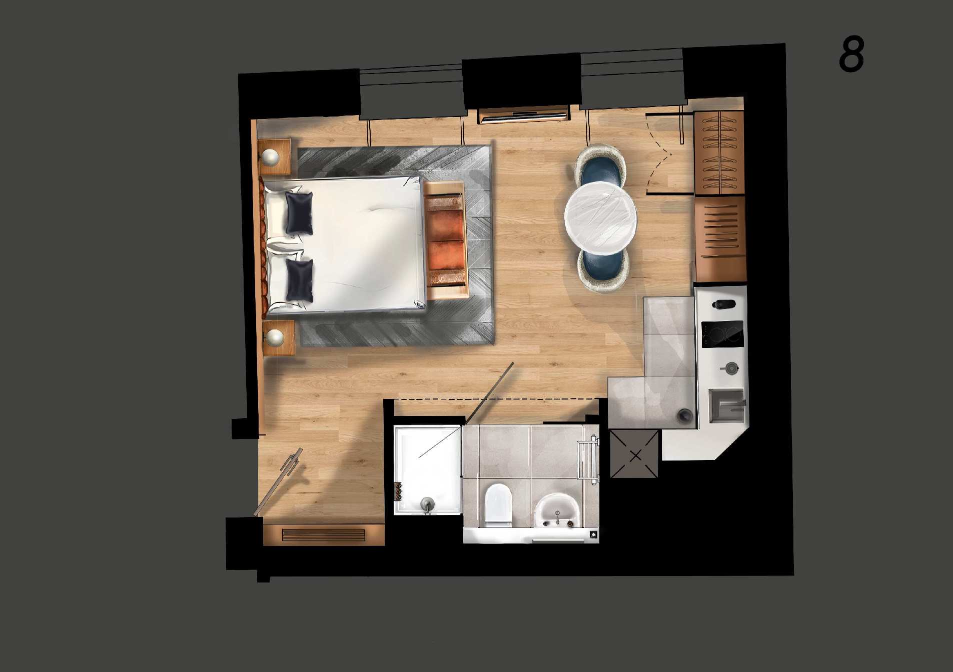 Perfecto para viajeros solos o parejas, el Estudio apartamento en los apartahoteles de master Cannon ofrece un espacio compacto pero cuidadosamente diseñado, ideal para hasta dos adultos. Con 26 m² de espacio de vida con estilo, este estudio combina funcionalidad moderna con un diseño inspirado en el estilo escandinavo.