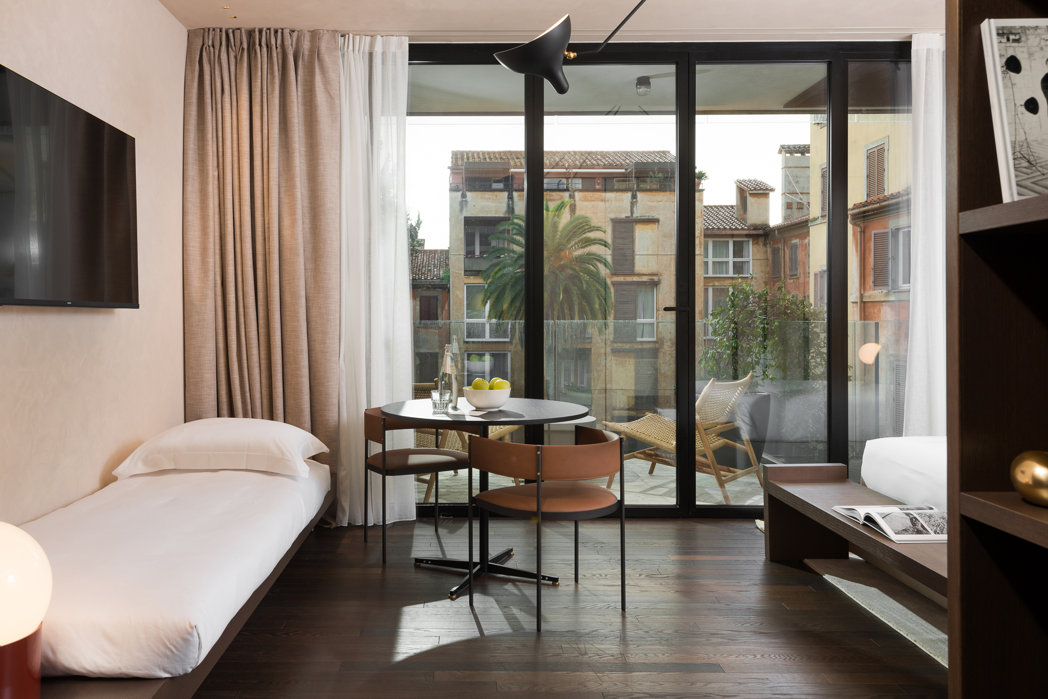 En el interior, encontrarás un espacio cuidadosamente diseñado con comodidades modernas, como Wi-Fi de alta velocidad, aire acondicionado y cafetera. Ya sea disfrutando de un espresso matutino en tu terraza o descansando al final del día, el Estudio con Balcón garantiza una estancia memorable en el corazón de Roma.
