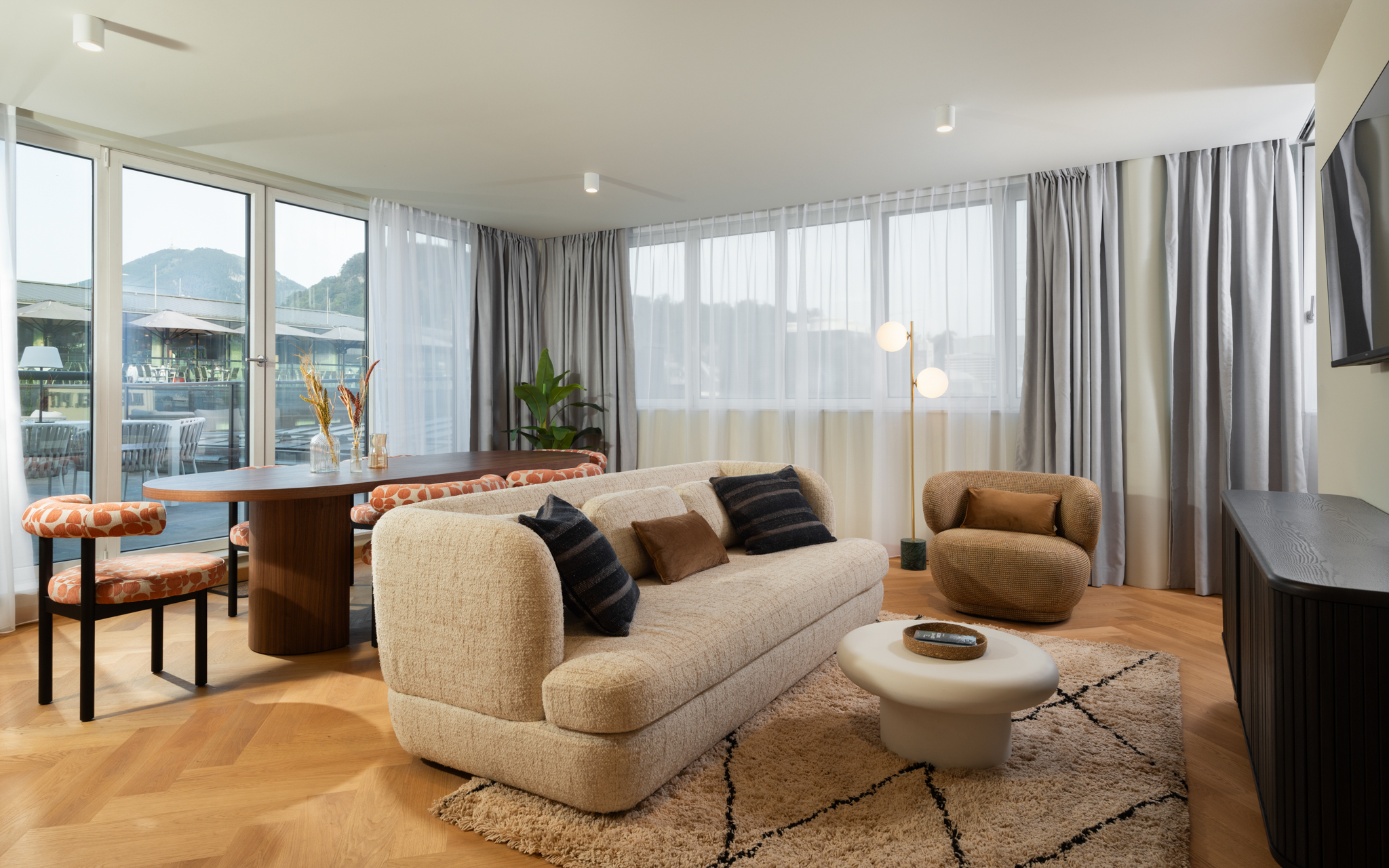 Ideal para escapadas familiares o reuniones con amigos, el Ático de tres dormitorios con terraza combina sofisticación y estilo, asegurando que cada momento de tu estancia sea memorable.