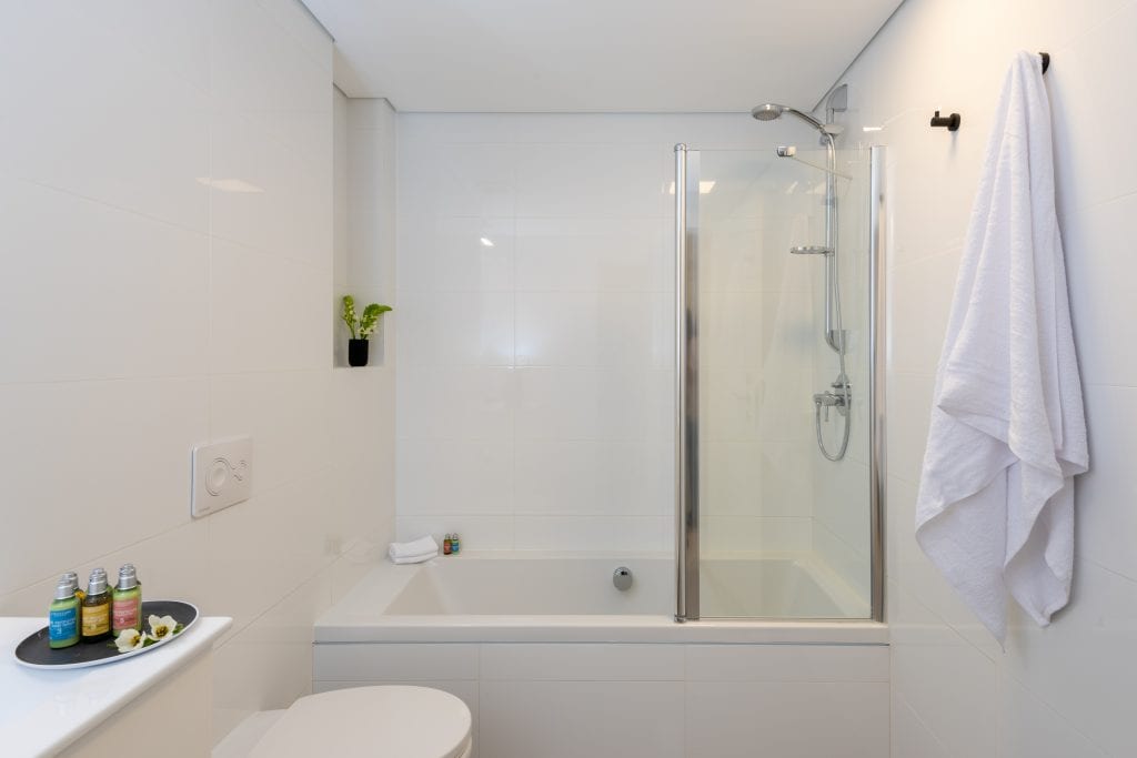 Leer más Descansa plácidamente en nuestras camas tamaño queen, vestidas con sábanas de alta gama y almohadas suaves. El salón cuenta con un cómodo sofá que puede convertirse en cama adicional, ideal para relajarse o disfrutar de una buena lectura. Los dos baños renovados están provistos de abundantes toallas limpias y una gama de artículos de aseo gratuitos para el cuidado corporal y capilar, que se reponen periódicamente para su mayor comodidad. La cocina totalmente equipada dispone de frigorífico de tamaño completo, fogones, microondas, tostadora y lavavajillas. Disfruta de sus comidas: isla de cocina con taburetes altos, o al aire libre en el balcón, con vistas a la ciudad. Comienza el día con energía gracias a la máquina de café Nespresso, provista de una cuidada selección de cápsulas para todos los gustos. Vive una experiencia de trabajo y descanso inteligente: espacio de trabajo equipado con Wi-Fi de alta velocidad y televisores Smart TV de 43” y 55”, que garantizan productividad y entretenimiento sin interrupciones. Otros servicios incluyen lavandería en la propia unidad, caja fuerte, equipo de planchado, lavadora y secadora.    Leer menos